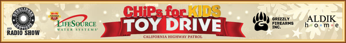 And partnering with us again this year to help collect Toys and Gifts for the CHP are Grizzly Firearms with two locations in Moreno Valley, Aldik Home in Van Nuys and LifeSource Water Systems in Pasadena. Plus we'll also invite you to our Offices and Studios in Glendale for our Annual Glendale Toy Donation Event, Sponsored by Gunslinger Auctions and Radio Show, to donate toys and gifts as well.